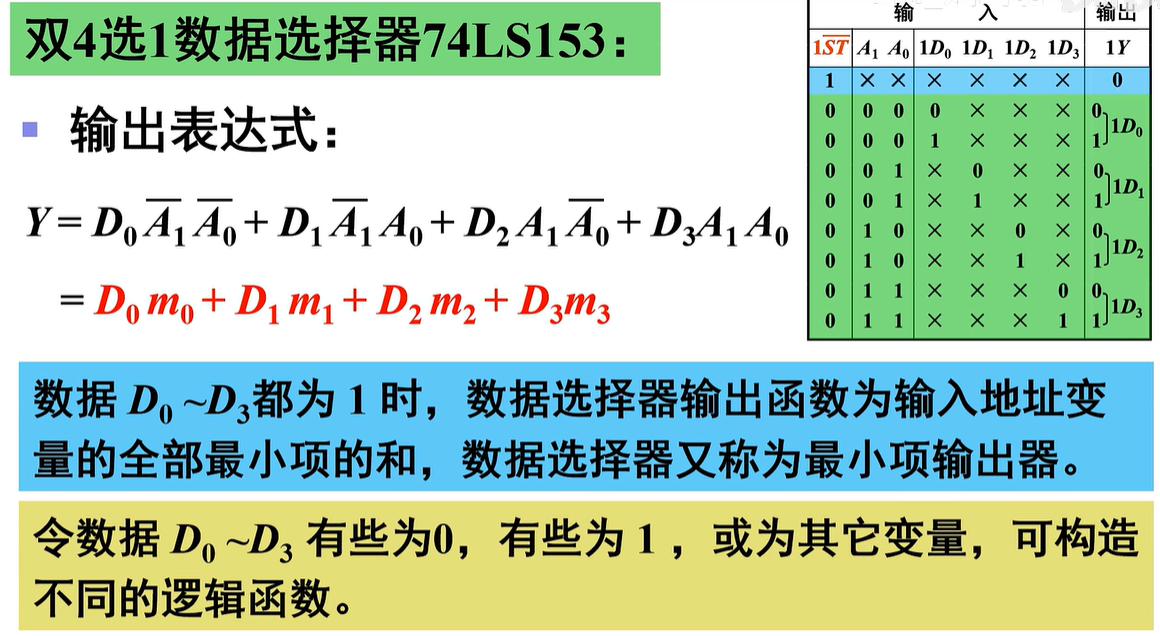 任何组合逻辑函数都可以表示成为最小项之和的形式,故可用数据选择器实现